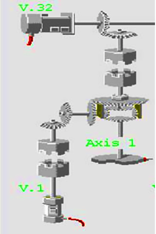 變速機控制和差速齒輪法既可離線設置也可在線調節 。連接變速機到滾筒支路,把變速機的變速比設為變量,通過調節各輥的變速比值,使其達到線速度相等。 連接差速齒輪到滾筒支路,在差速齒輪側加入輔助虛擬伺服電機使輥筒的速度得到修正 。