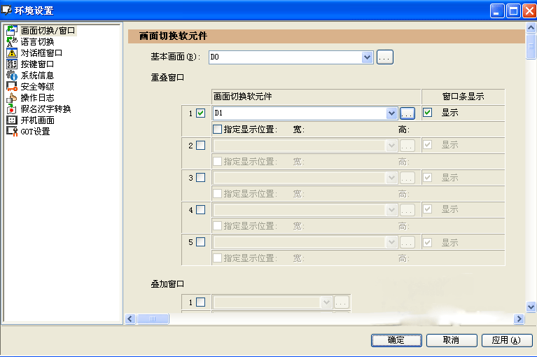 點擊軟件上的“公共設置”——“GOT環(huán)境設置”——“畫面切換窗口”如圖所示: