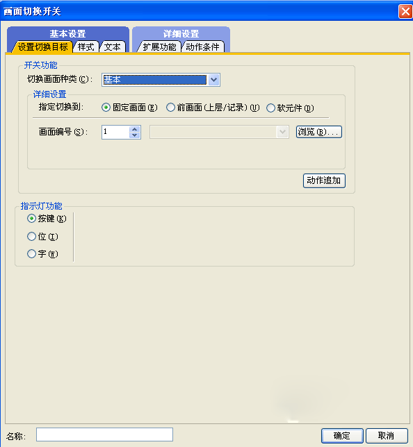 首先我們需要組態(tài)切換畫面的類型,是切換為基本畫面還是切換為窗口畫面,然后在詳細畫面設置的時候指定需要切換到的畫面,可以直接切換為固定畫面,在畫面編號里面設定需要切換到的畫面編號,或者也可以點擊旁邊的瀏覽按鈕選擇里面需要切換到的畫面。