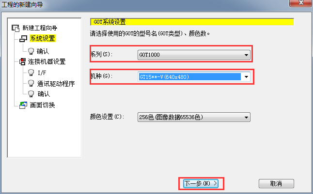 2.1.2選擇觸摸屏系列及機種類型,后單擊[下一步]