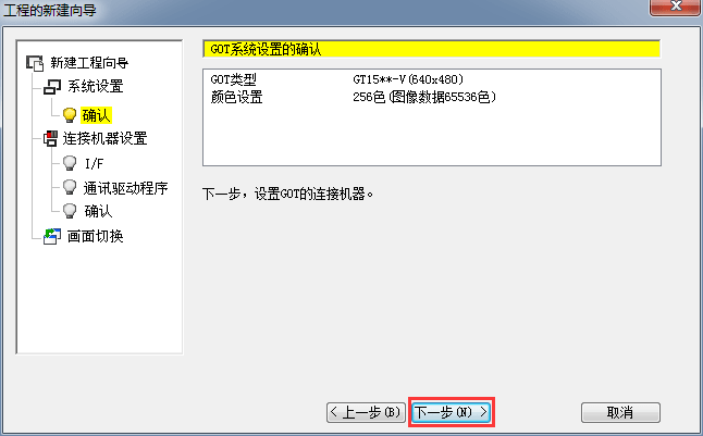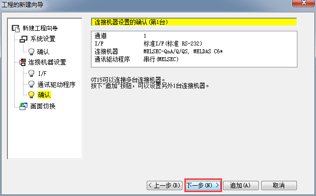 2.1.7 連接機器設置確認,確認機種連接參數(shù)設置,單擊[下一步]