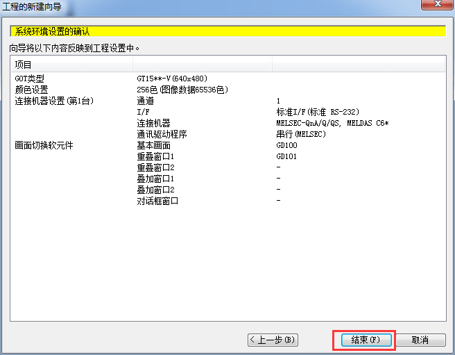 2.1.9 系統(tǒng)環(huán)境設置確認,單擊[結(jié)束],到此完成一個工程項目新建。