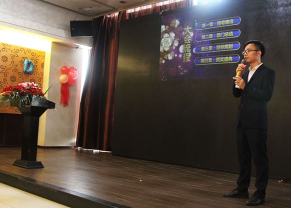 介紹完大會(huì)流程,那么接下來2017年海藍(lán)機(jī)電總結(jié)大會(huì)正式開始,首先由海藍(lán)機(jī)電的掌舵人朱總為我們致詞并就2017年工作成績進(jìn)行匯總為海藍(lán)家人指明我們2018年的航向。