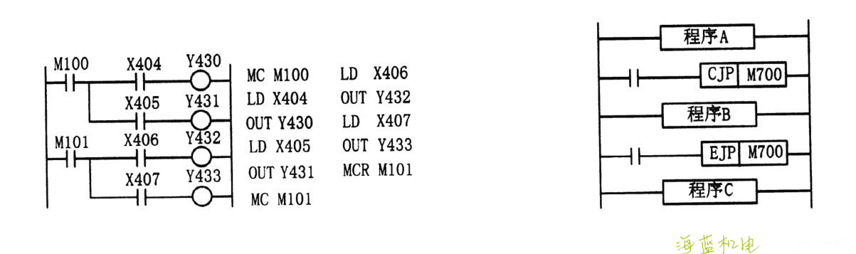 電路結束時不必使用復位指令 M RC ,因為執行指令 MC 后,原公共母線會自動恢復。到