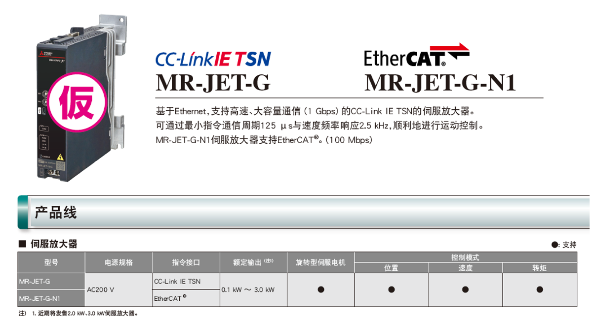 三菱伺服電機MR-JET-G型號產品介紹: